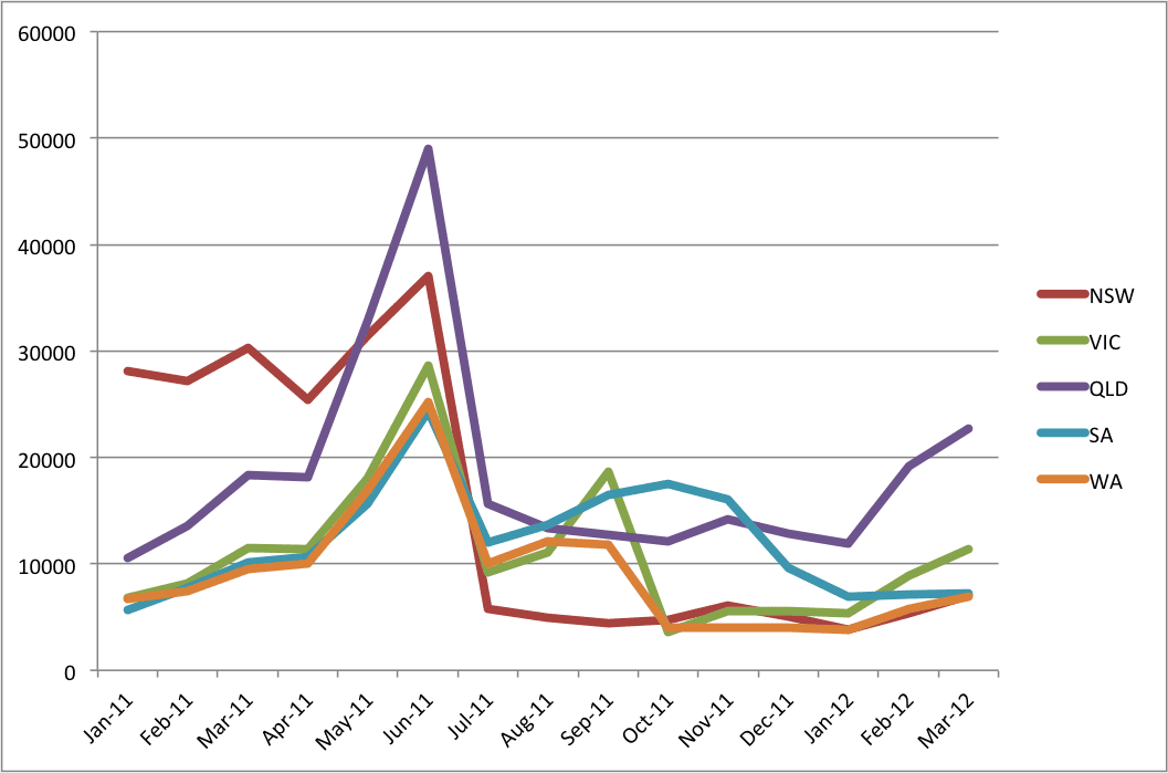 Changes in the solar multiplier led to an accelerated installation up to June 2011, and with further staggered perturbations to the market caused by changes in feed in tariff policies in different states.
