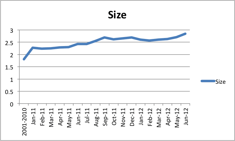 Average system size continues to grow, with systems recorded for June 2012 averaging 2.84 kw, but with changes in feed in tariffs occurring around Australia, this trend looks set to reverse.