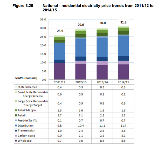 Below is the table that the AEMC report has produced that shows the national average price components of the consumer electricity bill.