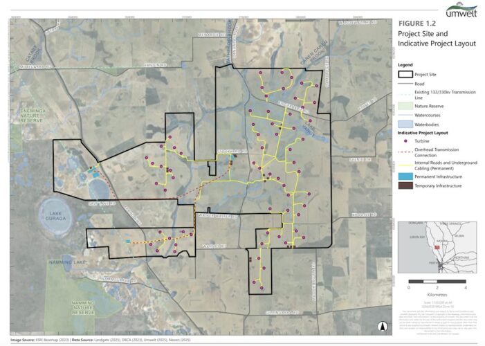 The development application, which just completed a period of public exhibition, suggests the wind farm could be developed in time to support Western Australia’s planned exit from state-owned coal power generation by 2029 – pending various approvals.