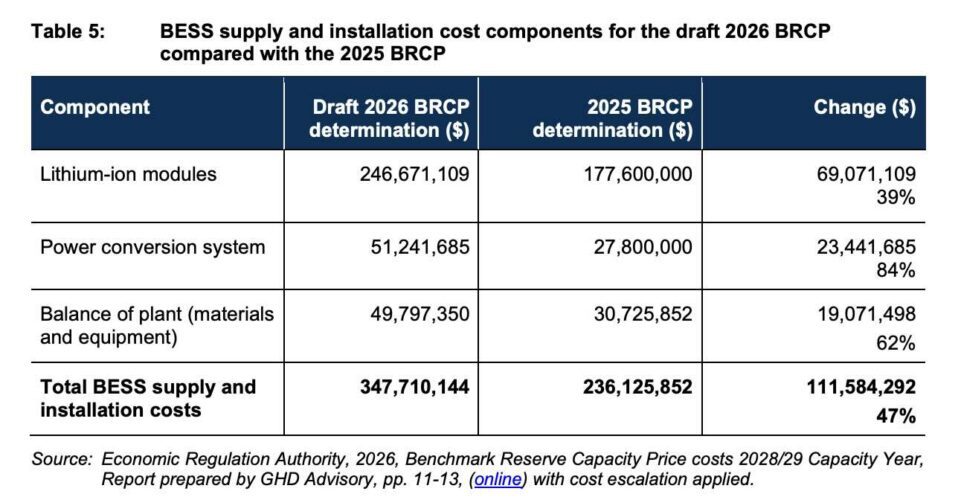 The regulator in Western Australia has recommended a dramatic increase in capacity payments for big batteries in coming years because of the new focus on batteries with six hours of storage rather than four hours.