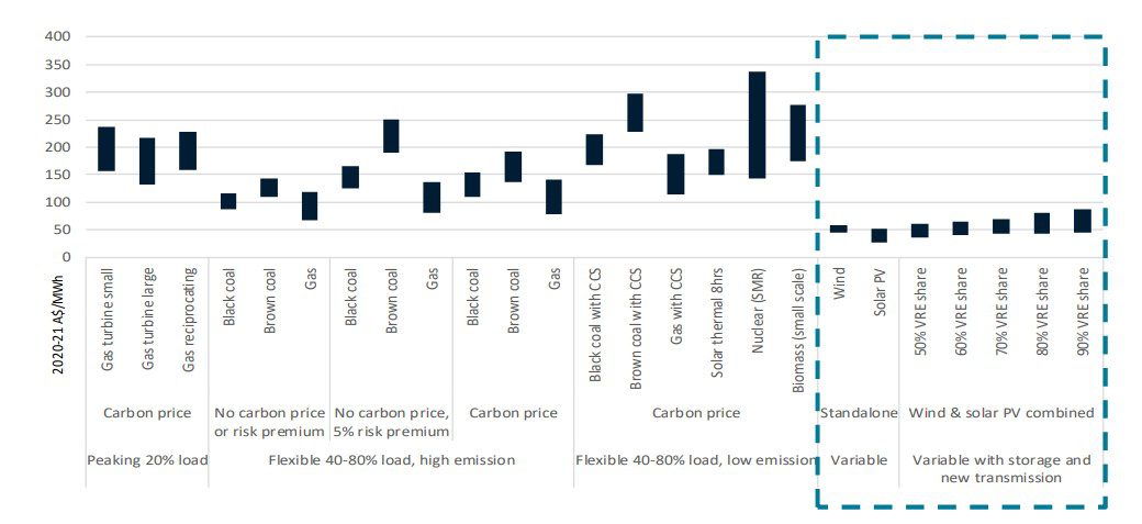 But in Australia, which is richly endowed with coal in mines that are often right next to the coal plants they feed, existing coal generation remains more economic than it would be to build a new wind or solar farm. According the CSIRO’s GenCost report back in December, the levelised cost of new solar is between $35 to $40 per MWh mark ($US26 to $US30), while BNEF found the cost of coal generation is around $US21 per MWh.