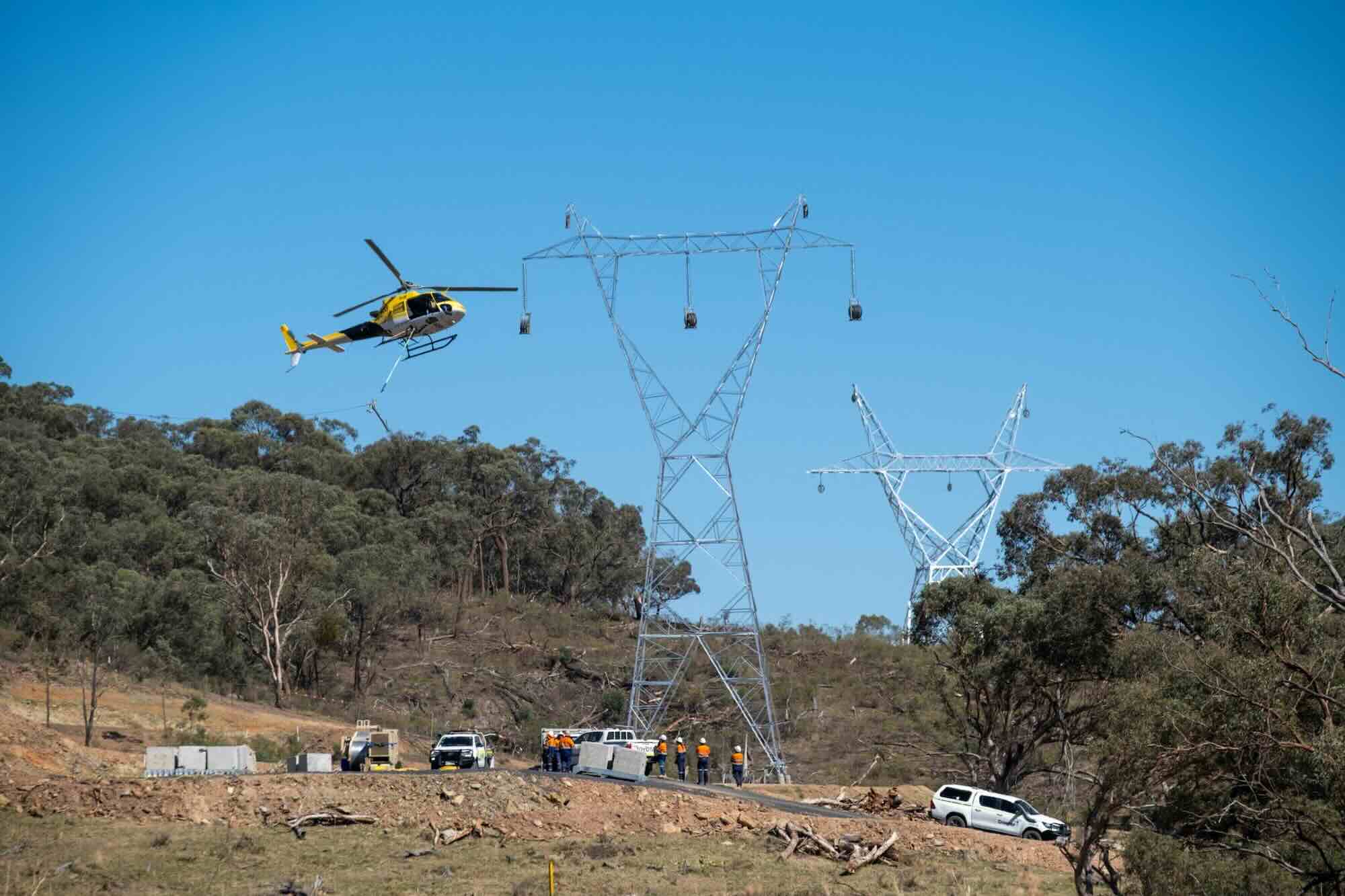 A helicopter has been deployed at Squadron Energy’s Uungala wind farm to start stringing the transmission lines that will connect the huge project to the grid in central western New South Wales.