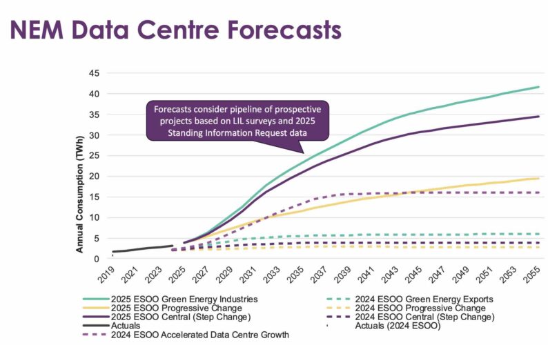 What’s interesting about the latest data is the massive increase in data centre demand forecasts from just a year ago, and over the shorter term, with predictions of 15 gigawatt hours of data centre load by 2030.