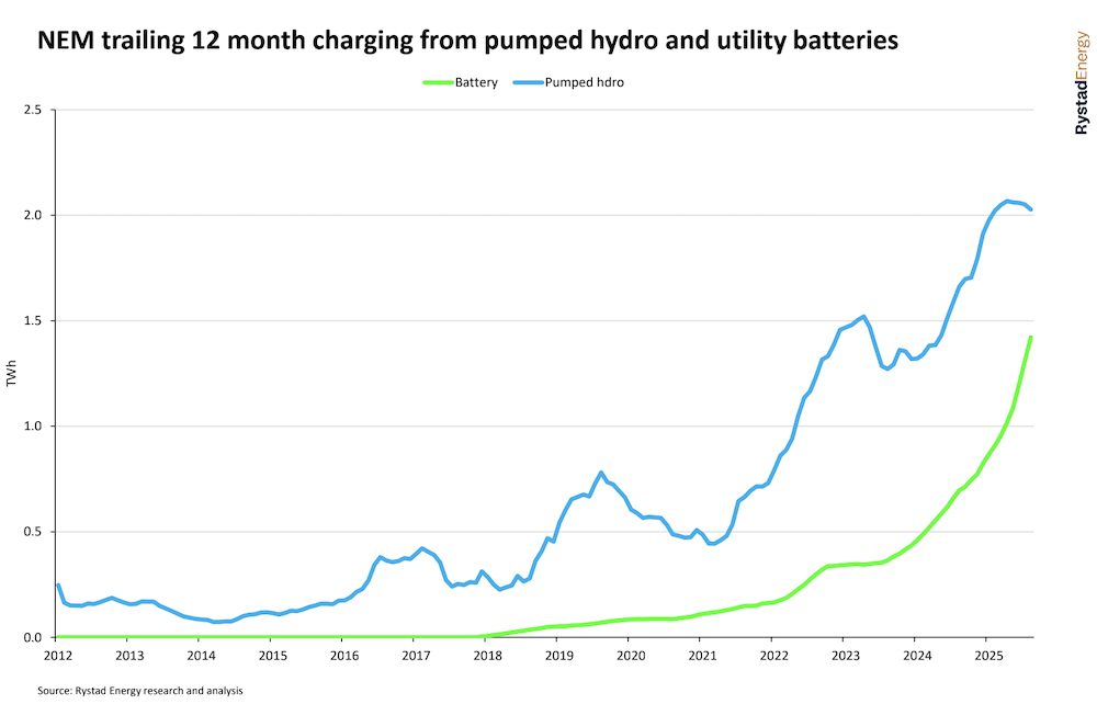 Rystad’s David Dixon says this is partly due to higher underlying demand – with increasing electrification and a cold winter – but it’s also due to more charging from more utility-scale batteries, as well as from pumped hydro.