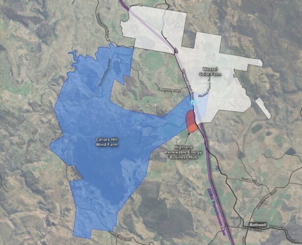 The proponents are also developing the proposed 350 MW Cellars Hill wind project on the opposite side of the same road, and both are feeding into a vision of an industrial precinct focused on data centres and alternative fuel production to bring back jobs to the region.