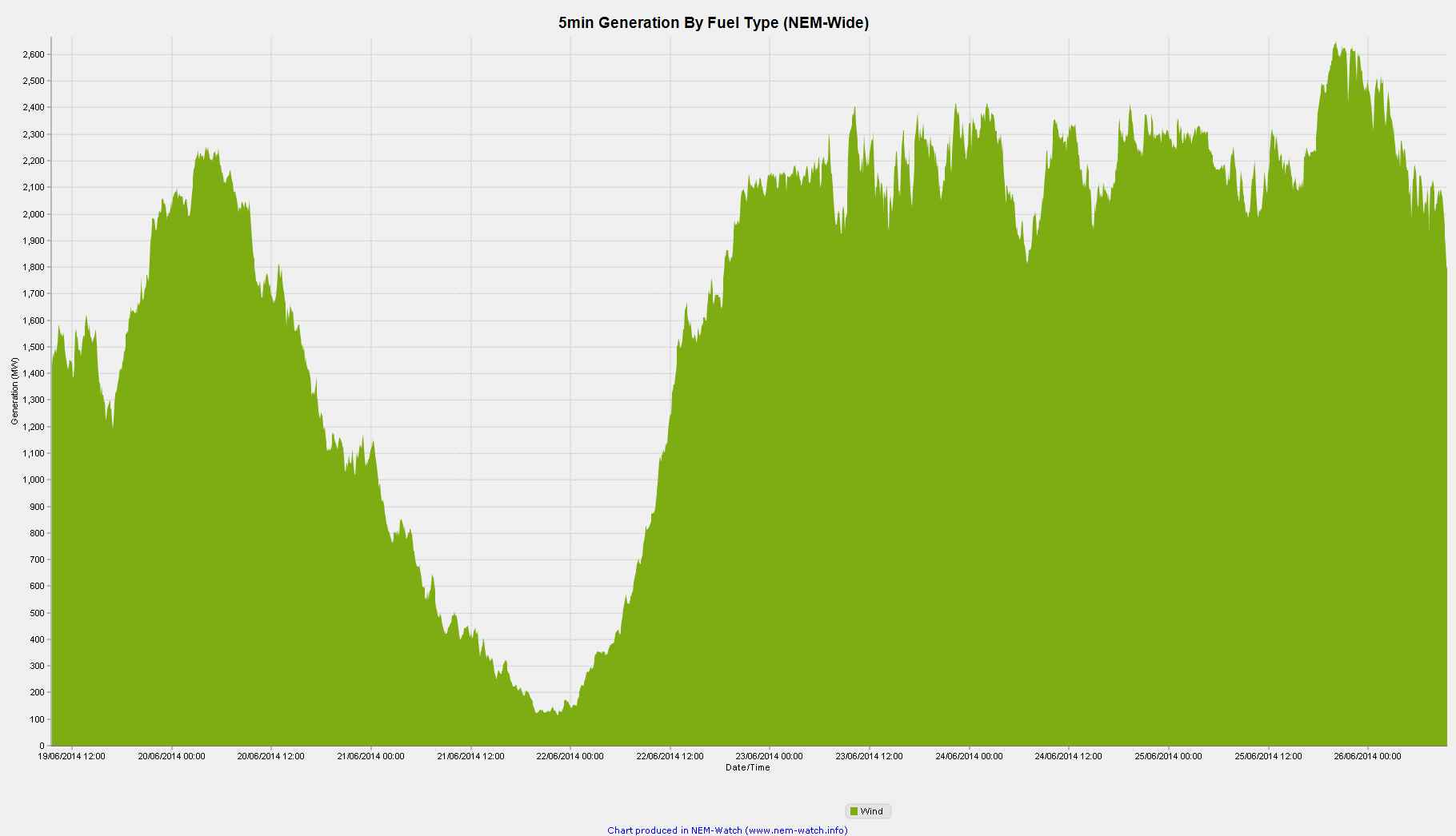 Hugh Saddler, from Pitt&Sherry, says that in South Australia, wind contributed an average 64 per cent generation over the three days from Monday to Wednesday. Coal was relegated to just 9 per cent.
