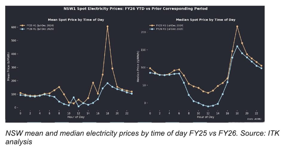 NSW generation during evening peak 5:30-7:30pm FY25 vs FY26. Source: ITK analysis