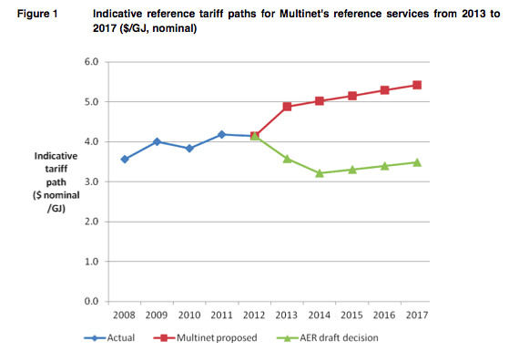 The good news is that under the AER draft rulings, the bill for Multinet residential customers (who pay an average $1000 a year on gas) would likely fall $8 a year over the next five years, rather than rising $18 a year under Multinet’s proposals – remember, this is just the distribution component of the bill, which typically accounts for just over a third of residential bills, and about one-quarter of commercial bids.