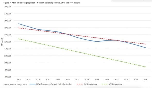 “This raises questions over the design of the NEG, with a ‘do nothing’ scenario already projected to be more ambitious than the government’s emissions target, rendering the new policy immaterial to the market,” Reputex says in its report.