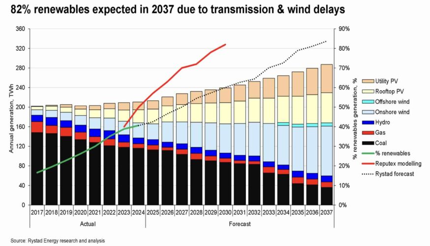 Rystad Energy, one of the leading energy consulting groups, has issued a particularly bleak assessment of the rollout of renewables in Australia, pointing to the lack of new wind projects, slow transmission, a buyers strike from utilities and corporate customers, and the uncertainty created by the Queensland LNP government.