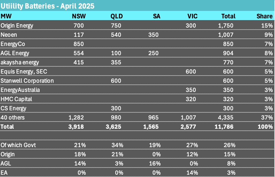 Where the information in the table is likely to be wrong is in my estimate of market shares from the point of view of influence on spot prices. Govt includes Queensland for all the Govt owned generators.