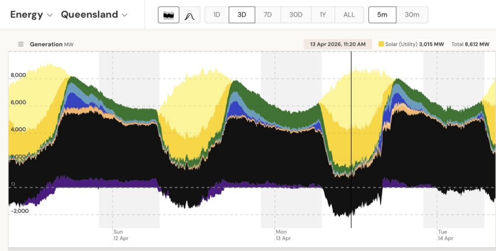 Queensland has the heaviest dependence on coal of any state in Australia, averaging 62 per cent of state demand over the last 12 months, and the state LNP government has ripped up the state’s renewable energy targets and found to continue burning coal for another two decades or more.
