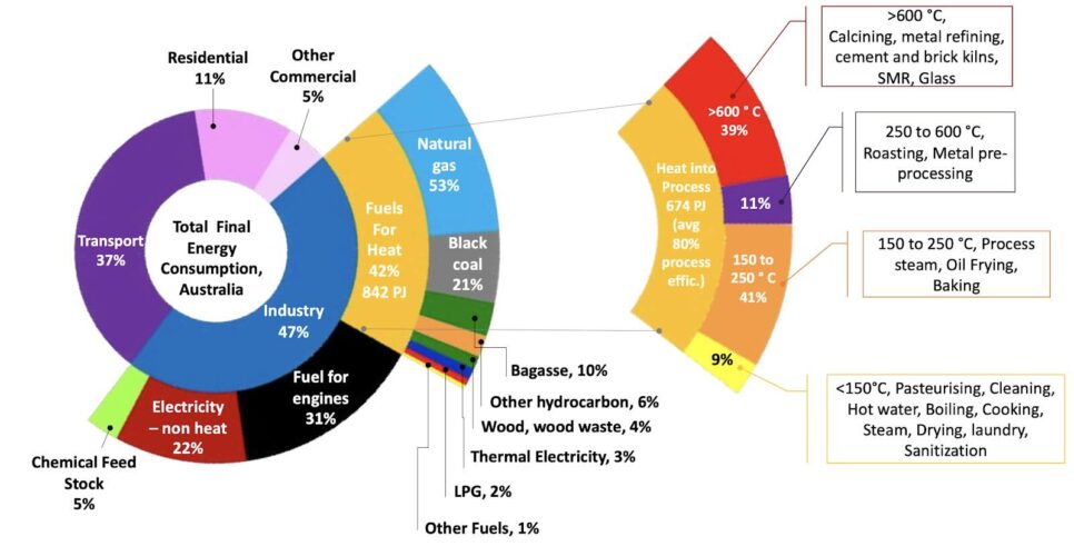 I had a personal interest in a session on Process Heat decarbonisation that I chaired and we had some excellent speakers including Aratherm selling heat as service, Katie Brown representing the Victorian Government and their approach to gas, Tom Geiser talking thermal storage, less than 20% of the cost of lithium batteries, and Keith Lovegrove who made an excellent presentation showing key graphs from a just released “The Australian Industrial Process Heat Market”