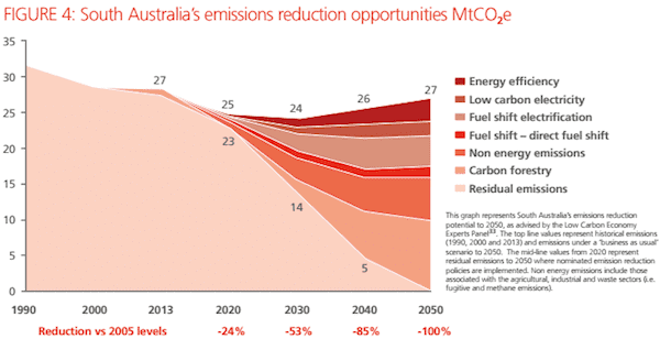 While there is no formal commitment made to a renewable energy target in 2050, the report notes that “indications are that (South Australia’s) electricity supplies could be almost completely decarbonised by 2050, with the state generating enough renewable energy to meet demand and potentially exporting to interstate markets.”