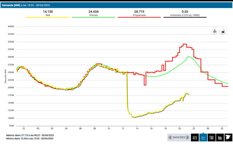 Not only is this an unprecedented blackout, it occurred right at the peak of Spain’s solar power generation in the middle of the day: