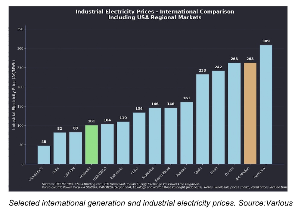 Readers could pay particular attention to Indonesia, a country with very cheap coal that has been capturing market share – and one that does lots of mineral processing. If it’s not an Australian competitor I don’t know what is. The price its generators receive is almost identical to Australia’s.