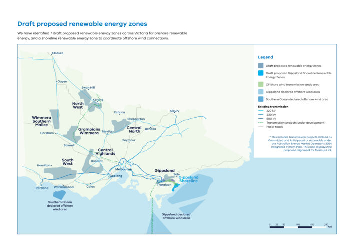 The seven renewable energy zones (REZs) proposed by VicGrid in the draft VTP – and illustrated on the map below – include Central Highlands, Central North, Gippsland, North West, South West, Grampians Wimmera and Wimmera Southern Mallee.